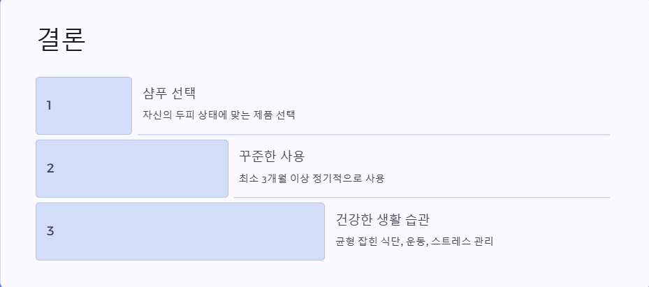 탈모 예방은 샴푸 선택뿐만 아니라 꾸준한 두피 관리와 건강한 생활 습관을 병행하는 것이 중요합니다. 지금 바로 자신에게 맞는 탈모 예방 샴푸를 사용해 건강한 모발을 유지하세요!
