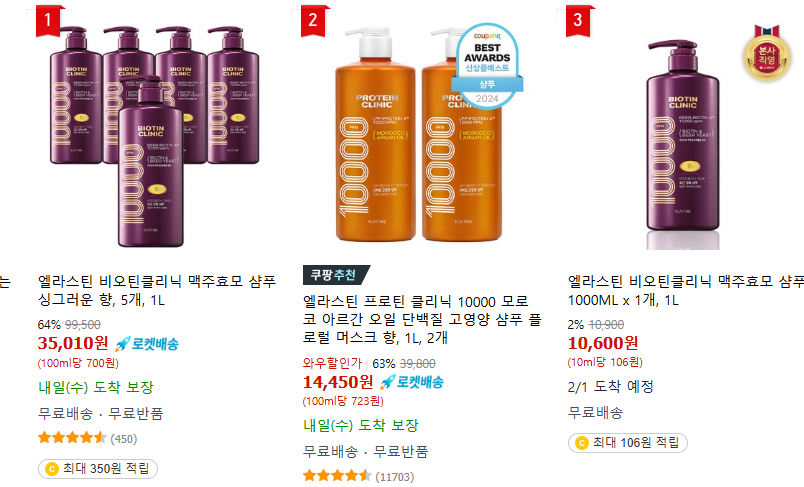 4. 엘라스틴 비오틴클리닉 맥주효모 샴푸