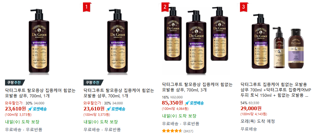 1. 닥터그루트 탈모증상 집중케어 힘없는 모발용 샴푸