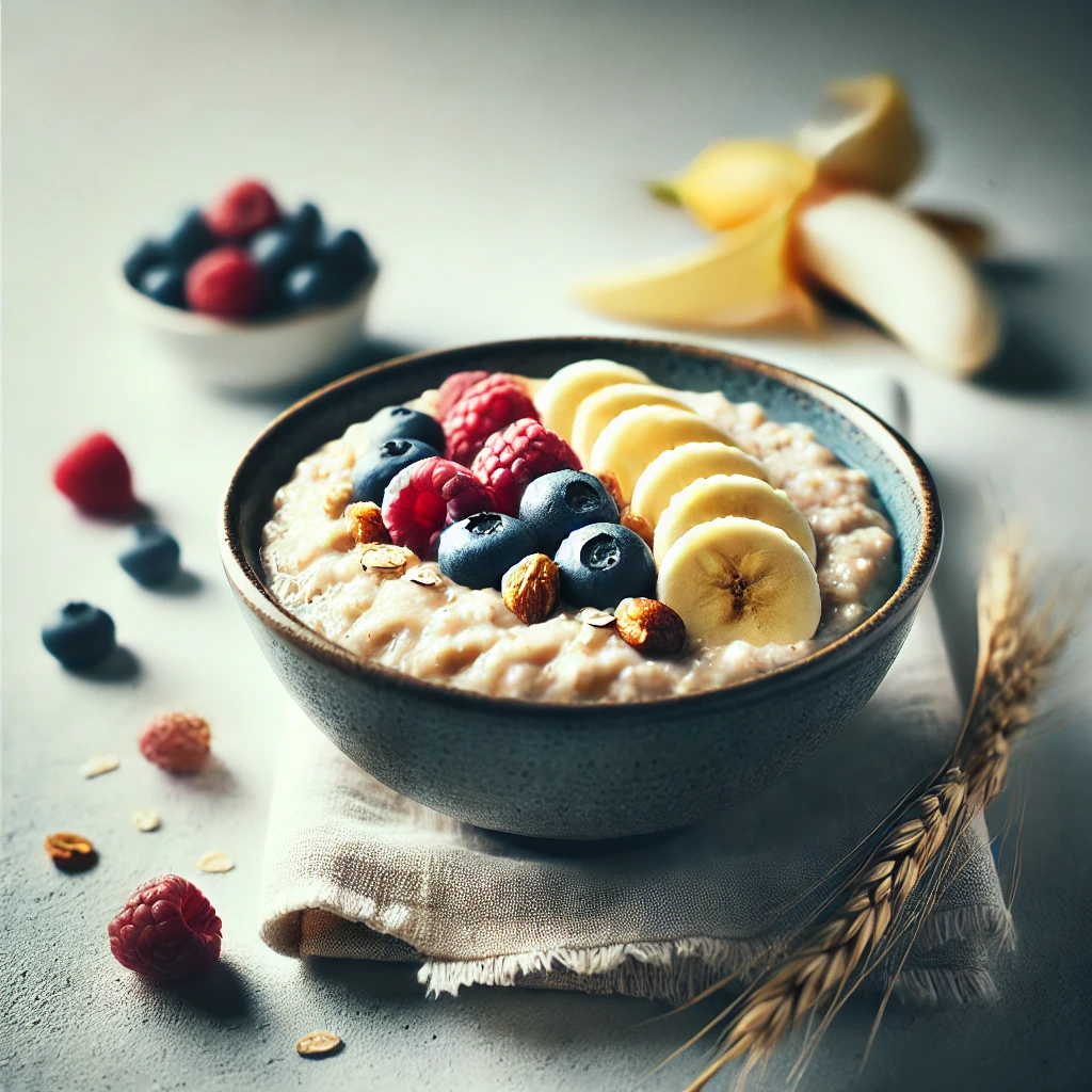 오트밀은 복합 탄수화물이 풍부해 혈당을 안정적으로 유지시켜주며, 에너지를 오래 유지할 수 있도록 돕습니다. 또한, 섬유질이 많아 소화를 돕고 배부름을 오래 유지시켜줍니다.